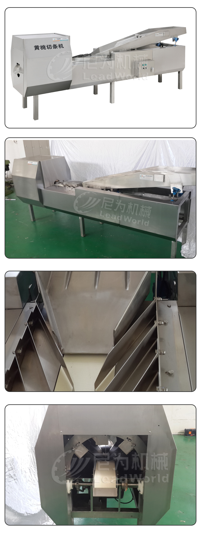 該切條機采用不銹鋼SUS304﹟制造,運行穩定可靠,操作簡單方便,切條均勻美觀,是各類水果罐頭出口加工企業的理想設備。